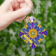Yellow & Blue Provencal Mosaic add text both sides Key Ring