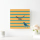 Yellow blue stripes dinosaur t-rex jurassic animal square wall clock
