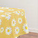 This cute and groovy tablecloth features spring bohemian daisies on yellow.