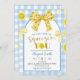 Yellow Coquette Bow Lemon Baby Shower Invitation, Can't Wait To Squeeze You Baby Shower Invite, Editable Blue Plaid Baby Shower