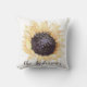 This throw pillow features a watercolor style illustration of a sunflower in yellow and brown. Your name or other personalised text is spelled out below in coordinating brown script. Use the template field to enter your own name or other message.