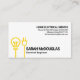 A simple white cover is accentuated by a creative yellow bulb and power plug motif near the base of the card. Beside this motif lie your prestigious name and job title. Towards the top corner of the card are the business name and contact details.