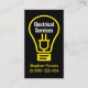An all black cover features a yellow bulb-power plug design. The plug acts as the filament and draws power from your business name "Electrical Services". Towards the base is your contact details in yellow.