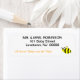 A Sweet Baby is on the Way in orange script. Return addess typography in black. Cute smiling yellow bumble bee with black stripes and fluttering wings buzzing by for the Baby Shower. For twins, multiples edit text. Original Artwork by TamiraZDesigns.