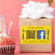 A bright yellow background. Personalise and add your business name, your own qr code to your Facebook account and a text. Black text. With the text x2: Follow us!