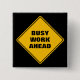Fun classic yellow diamond caution road sign warns of busy work ahead in a thick black sans serif font. A pun play on words of a classic sign, road work ahead.