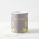 Sweet and dainty Butterfly Floral Mug with a muted dusty grey background and light yellow butterflies and floral vine embellishments. This elegant floral mug is perfect for drinking your favourite hot beverage with a dash of girly flair. Easy to customise, simply add the personalised text of your choosing in the text fields provided. Click on the "Customise It" button to find additional personalisation options.