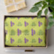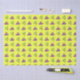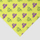 Yellow tissue paper with cute green and purple cartoon cars. Decoupage project for a kids room.