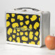 Yellow cheese slices. Seamless pattern. Custom background colour. Custom text on both sides.