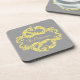 Elegant and sophisticated Chic Damask Coaster Set featuring a soft grey background and a stylish damask flourish embellishment in yellow. This modern design is easy to customise with your own text. Click "Customise It" to find more personalisation options.