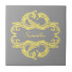 Elegant and sophisticated Chic Damask Tile featuring a soft grey background and a stylish damask flourish embellishment in yellow. This modern design is easy to customise with your own text. Click "Customise It" to find more personalisation options.