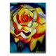 with original art design from watercolour painting by Sacha Grossel of yellow climbing freesia flower. This floral design is of bright, colourful juxtaposition of yellow against a dark blue background. A close up, macro flower of beautiful botanical inspired design for flower lovers everywhere