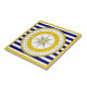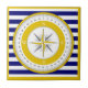 Yellow Compass Rose Blue and White Stripe Tile