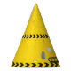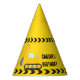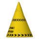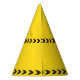 Cool custom construction birthday party hat for a kid who loves yellow construction vehicles in black and yellow. Fun vehicle party favour for a little boy who will love cars and trucks. Customise with your kid's name under the black and yellow caution tape.