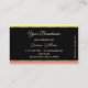 Make a lasting impression with this stylish business card design featuring light yellow, black and salmon coloured stripes with pretty shimmery small gold decor.
