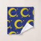 Bath towel set features an original marker illustration of a yellow moon and stars on a midnight blue sky.