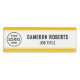 Personalise this yellow edged name tag with your company logo, employee name and job title. It's available with a magnetic back fastener or with a safety pin back. It's a lightweight name tag - 1 inch x 3 inch. Be sure to select a backing option where it says "Backing Option" on the product page. Employee name and job title are easy to read in black on white. This name tag is perfect for all your employees.