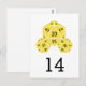 Did meeting your future spouse and everything leading up to your engagement feel like you rolled a twenty? If so, this geeky chic D20 Dice Wedding Table Number Postcard is perfect for you! Featuring a bigger twenty-sided D20 die and two smaller dice flanking it, this elegant yet nerdy table card in yellow is easy to customise with your wedding details. Click "Customise It" to find more personalisation options.