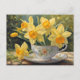 Yellow Daffodil Flowers in Vintage Tea Cup Postcard