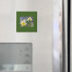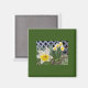 a Dark Green, 2" , Square Magnet, with a Picture of Beautiful Yellow Daffodils, in the Middle of it.