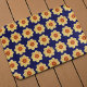 Yellow Dahlia Floral Pattern on Blue Bath Mat