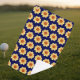 Yellow Dahlia Floral Pattern on Blue Golf Towel