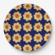 Yellow Dahlia Floral Pattern on Blue Paper Plate