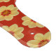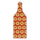 Chop and dice your food safely on this paddle style, glass cutting board that features the photo image of a yellow Dahlia flower printed in a repeating pattern on a bright, red background. A fun, floral design! A perfect size for serving up fruit and cheese samples!