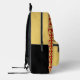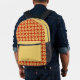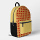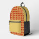 Travel with this stylish and trendy backpack that features the image of a yellow Dahlia flower bloom on a bright, red background and printed in a tiled pattern on front side only. A fun, floral design! Top of backpack and zippered pouch is a matching, solid yellow colour. Sides and back are black.