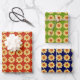 Set of 3, colourful wrapping paper sheets that feature the image of a yellow Dahlia flower on different background colours to include red, lime green, and navy blue. Images are printed in a tiled pattern. Select your paper style.