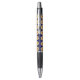 Cool and trendy pen that features an image of a yellow Dahlia flower on a navy blue background and printed in a repeating pattern.