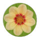 Chop and dice your food safely on this decorative, glass cutting board that features the photo image of a yellow Dahlia flower on a lime green background. A lovely, floral design!