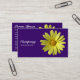 A business card with a yellow daisy photo motif. Business name etc on the front with other details on the reverse with the same motif and style.