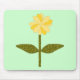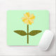 This mousepad features a digital image of a daisy with a green stem with two green leaves on it and light and dark yellow coloured petals. This is a simple, yet beautiful design. The background is a pale grass green colour.