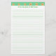 Painting of a pattern of yellow daisy flowers on a light green background, is printed across the top of custom stationery. A placeholder is there below it to add your personalised message. The body is lined for easy writing. It's a fun design for spring.