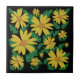 A bright floral design which includes yellow daisy flower heads together with green leaves, arranged in a pattern.