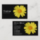 A business card with an isolated photo image of a yellow daisy after a rain shower. Business name etc on the front with other details on the reverse with the same motif and style.