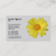 A business card template with an isolated photo image of a yellow daisy after a rain shower. Suitable for a variety of businesses. Ready to be customised. The company details are on the front with name and contact details on the reverse side. Background colours are customisable.