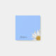 Floral sticky notes with a cute white and yellow daisy image on a blue background. Black script lettering can be personalised with your own text, great for staying organised with a soft botanical style.