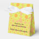 Let your customers or clients know you value them with a nice surprise or treat they find when they open this beautiful Yellow Daisy tent style favour box. Perfect for small items, samples and coupons. 3"w x 1.5"l x 3.25"h card stock. Ships flat and some assembly is required. Can be personalised with your own message to your customers or clients. Customise the box and ribbon with colours of your choice.