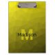 Yellow dark ombre geometric mesh pattern Monogram Clipboard