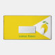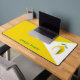 A yellow desk mat with a lemon in a white triangle and green customisable message. A nice office decoration or gift for a foodie friend!