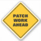 Funny classic yellow diamond caution road sign warns of patch work ahead in a thick black sans serif font. A thoughtful gift for a seamstress, quilter, asphalt repair artist in your life.