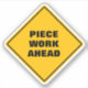Funny classic yellow diamond caution road sign warns of piece work ahead in a thick black sans serif font. Perfect for someone working on a production line or who does a repetitive job.