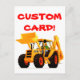 Custom Yellow Digger Postcards, add your own message! Looking for a special digger birthday gift? Kids love diggers, these custom digger postcards have a big yellow digger on them. Add your own name or message. Ideal for the young builder or farmer in your life. Brilliant for a digger themed kid's party. Kids love diggers and building. Great for truck themed children's bedroom. They make great truck themed birthday party postcards or place settings. More great digger and excavator birthday and truck gifts from Paul Stickland's TruckStore. How about some fabulous MATCHING TRUCK POSTAGE? Click on the truck postage below to go and choose your favourite matching big trucks! (US only)