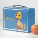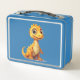 A Personalised Childs Yellow Dinosaur Metal Lunch Box For School