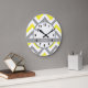Yellow Dk Gray White LG Chevron Gray Name Monogram Large Clock