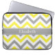 Yellow Dk Grey White LG Chevron Grey Name Monogram Laptop Sleeve