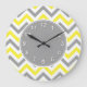 Yellow, Dk Grey Wht Large Chevron ZigZag Pattern Clock