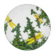 This Dragonflies Glass Cutting board features bright yellow dragonflies on a digital art fractals background.